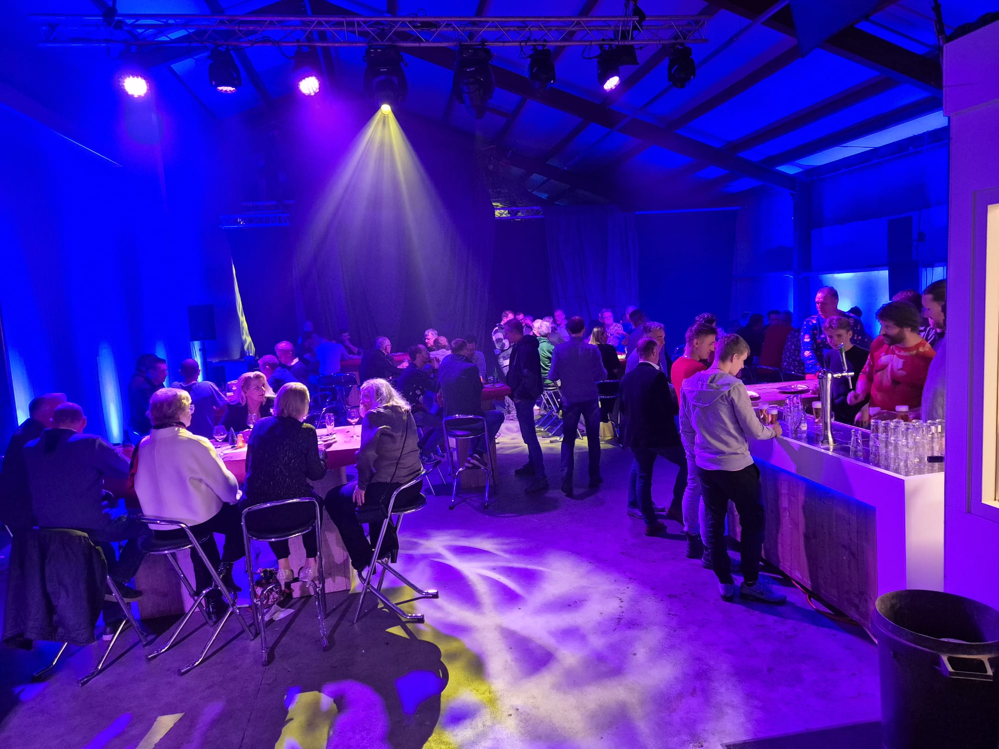 Vervolgens, rond half 6, was het tijd voor een openingsborrel met bittergarnituur, de collega’s van al onze vestigingen genoten van een hapje en een drankje. De werkplaats was helemaal omgebouwd. Er was ruimte gemaakt voor een ‘theater gedeelte’ en een ‘restaurant gedeelte’.